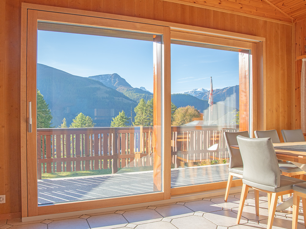 Wenn draussen die Sonne das Oberwallis in goldenes Licht taucht, holen unsere Hebeschiebetüren aus Holz oder Holz Metall dieses Licht direkt ins Zuhause. 🍂☀️